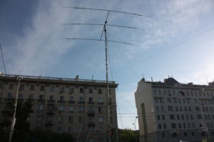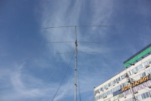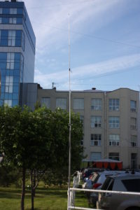 Члены Федерации радиоспорта Новосибирской области установили телескопическую мачту высотой 12 метров и на ней смонтировали трех диапазонную антенну «Волновой какал», а так же антенну «несимметричный диполь» для работы на НЧ диапазонах.