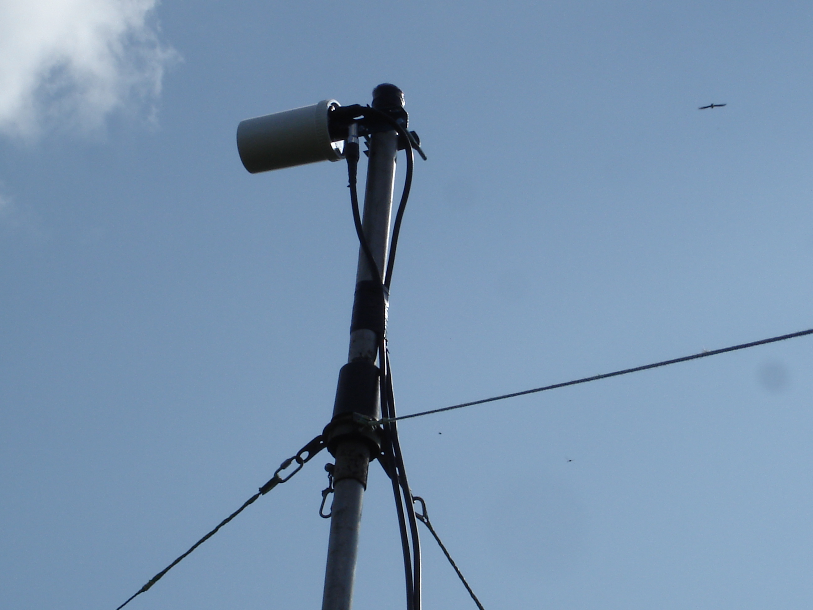 3G антенна "пристроилась" временно на 6м мачте на углу дома.