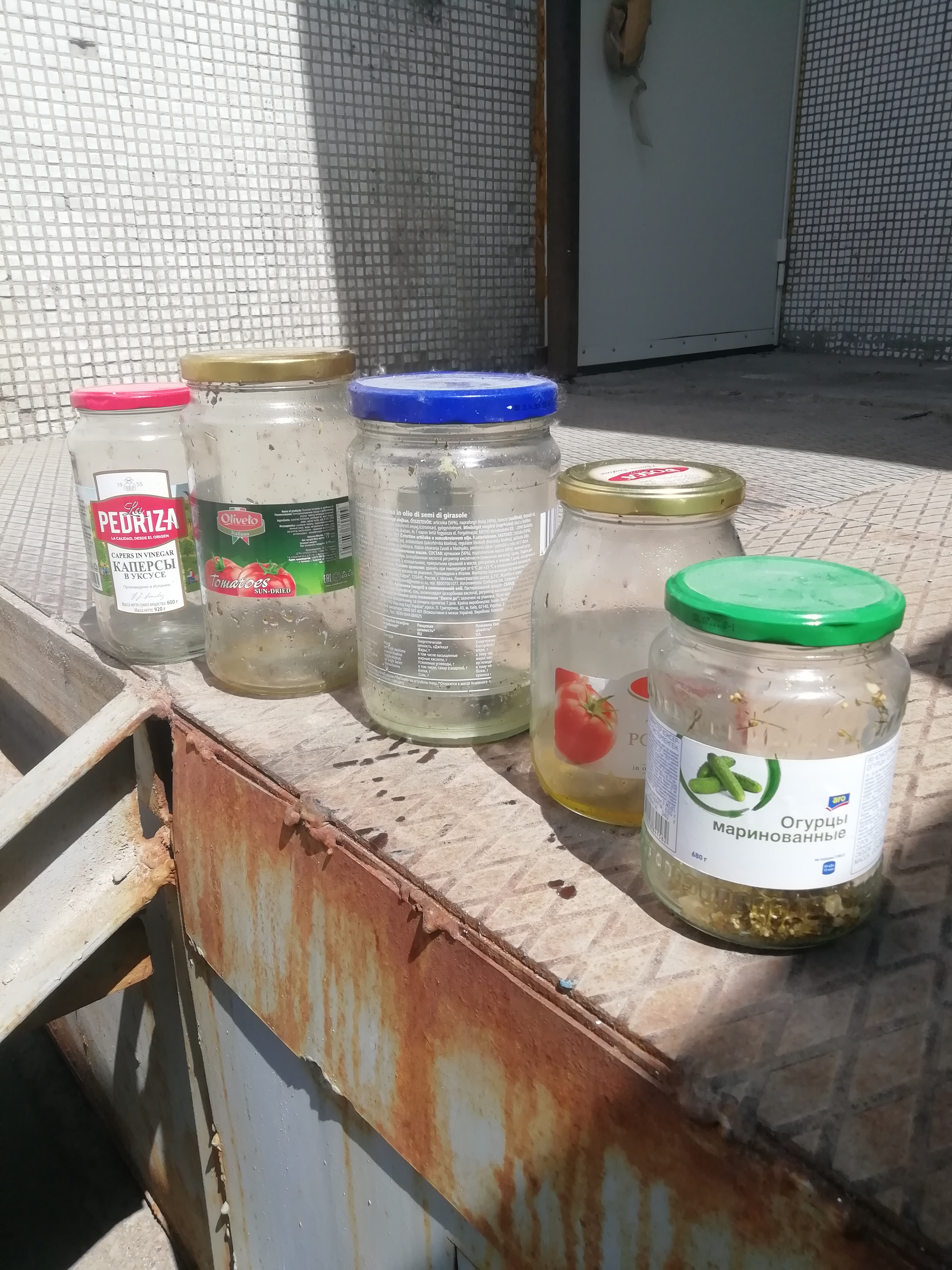 Стеклянные банки б/у с пищевого производства с винтовыми крышками из под соответствующих продуктов не мытые, в основном из под вяленых томатов (в масле) с широким горлом, очень удобные.