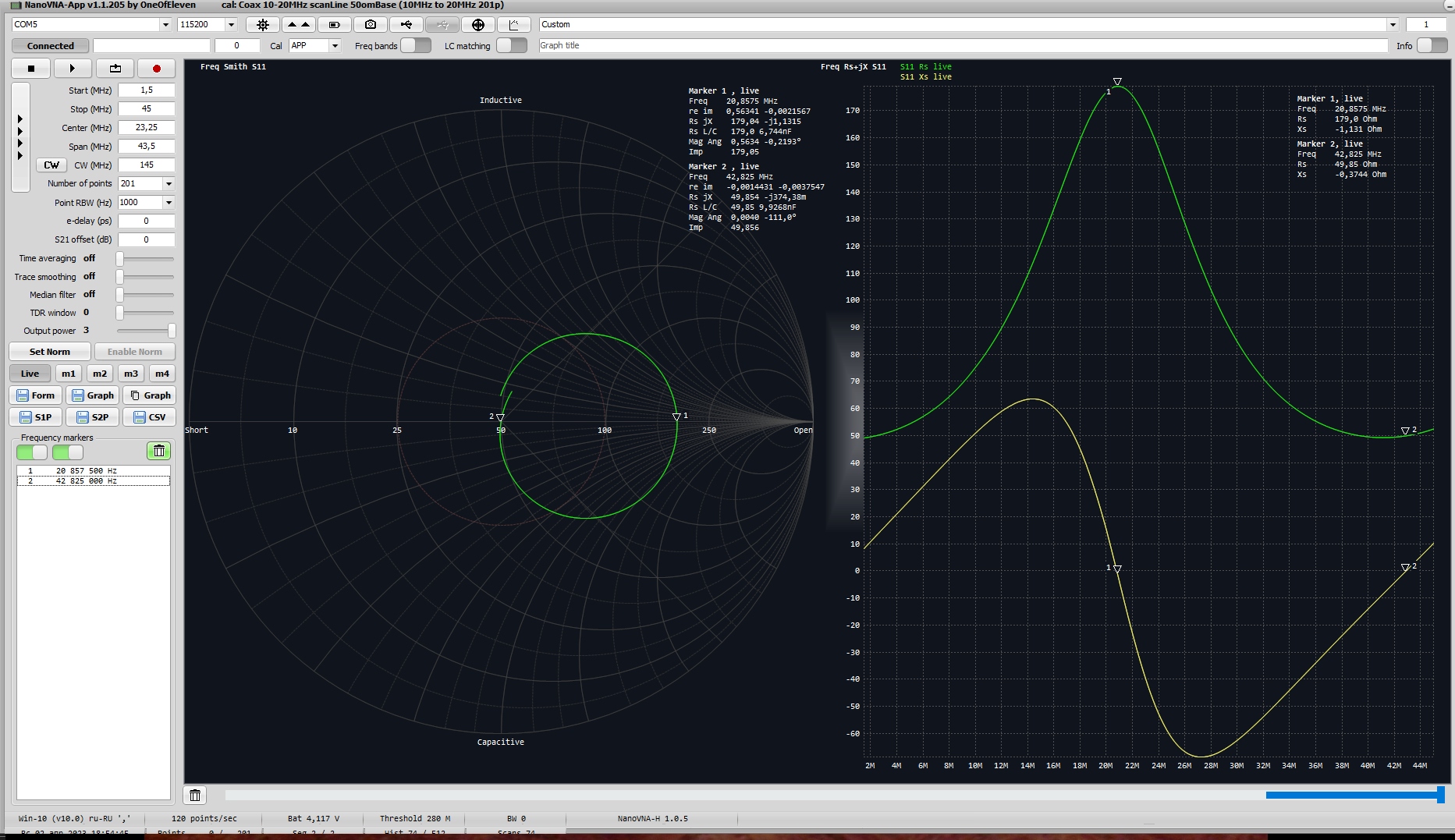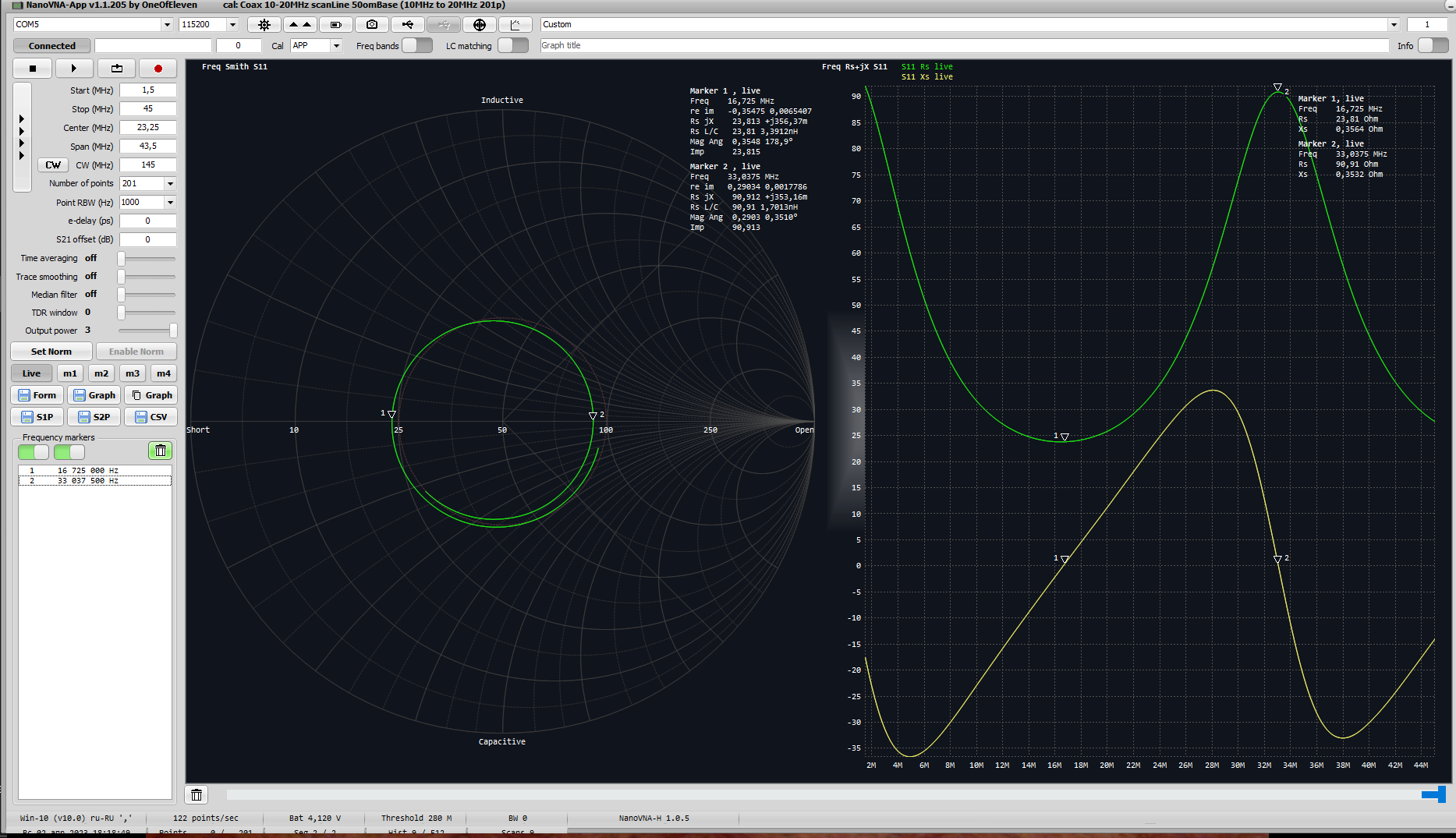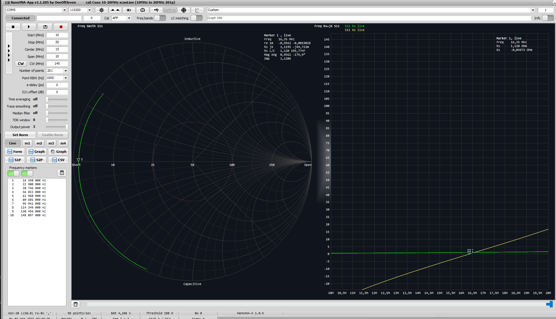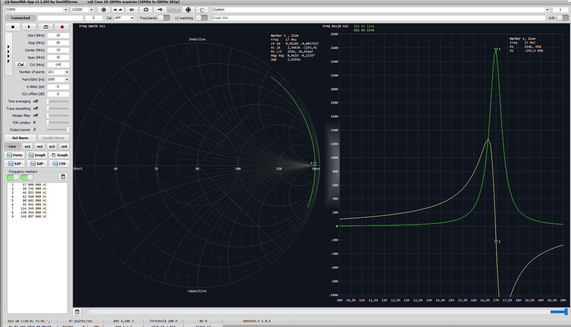 - программное обеспечение: NanoVNA-App v.1.1.205 by OneOfEleven.