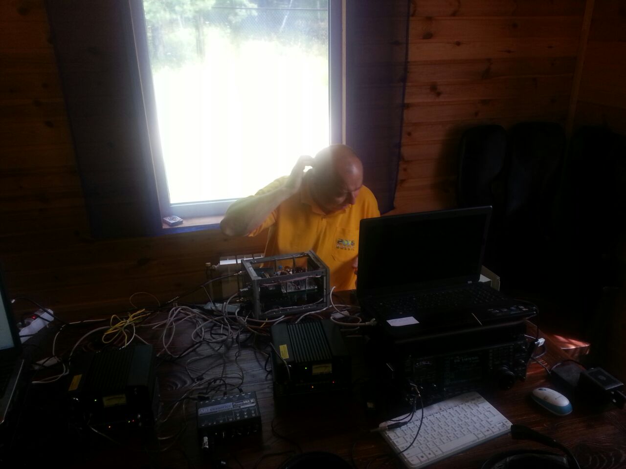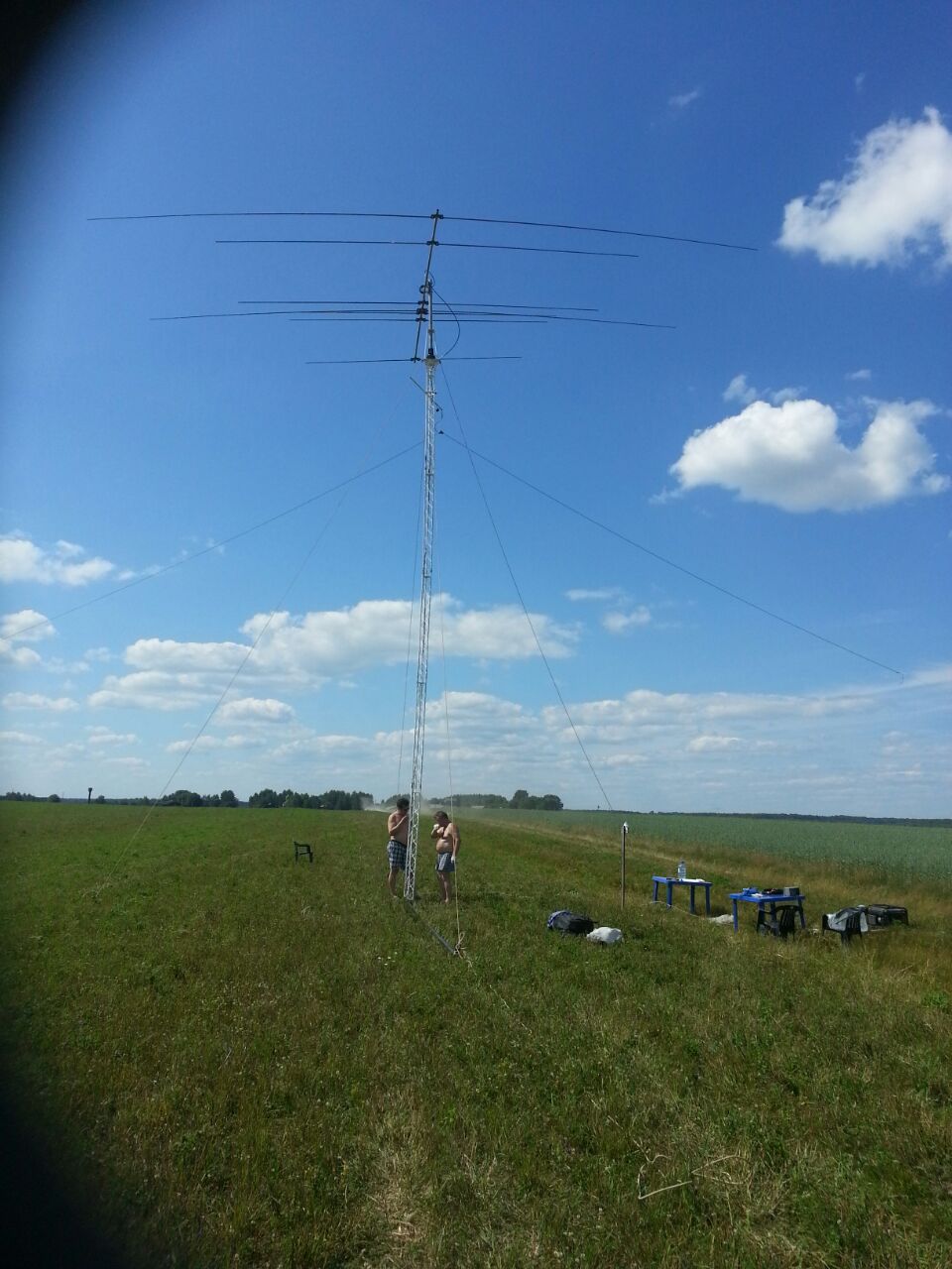 - База. Виден Inverted V на 40м диспазон, подвешенный к сосне, для проверки аппаратуры