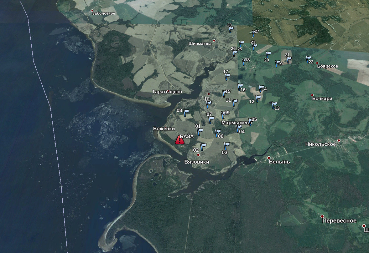 - Общая карта местности, расположение Базы и соревнубщихся команд